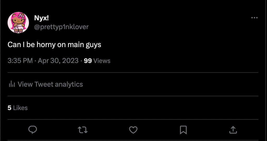 I’ve been trying to build a healthy relationship with my sexuality. To stop rejecting my horniness, to let it consume me for once. I have dealt with the demonization of my sexuality and internalized it. I don’t have to punish myself for having the desire to experience pleasure on my own terms anymore. It’s time for me to break the chains and be confident in who I am. Plus, being horny is powerful AF when you’re in control.